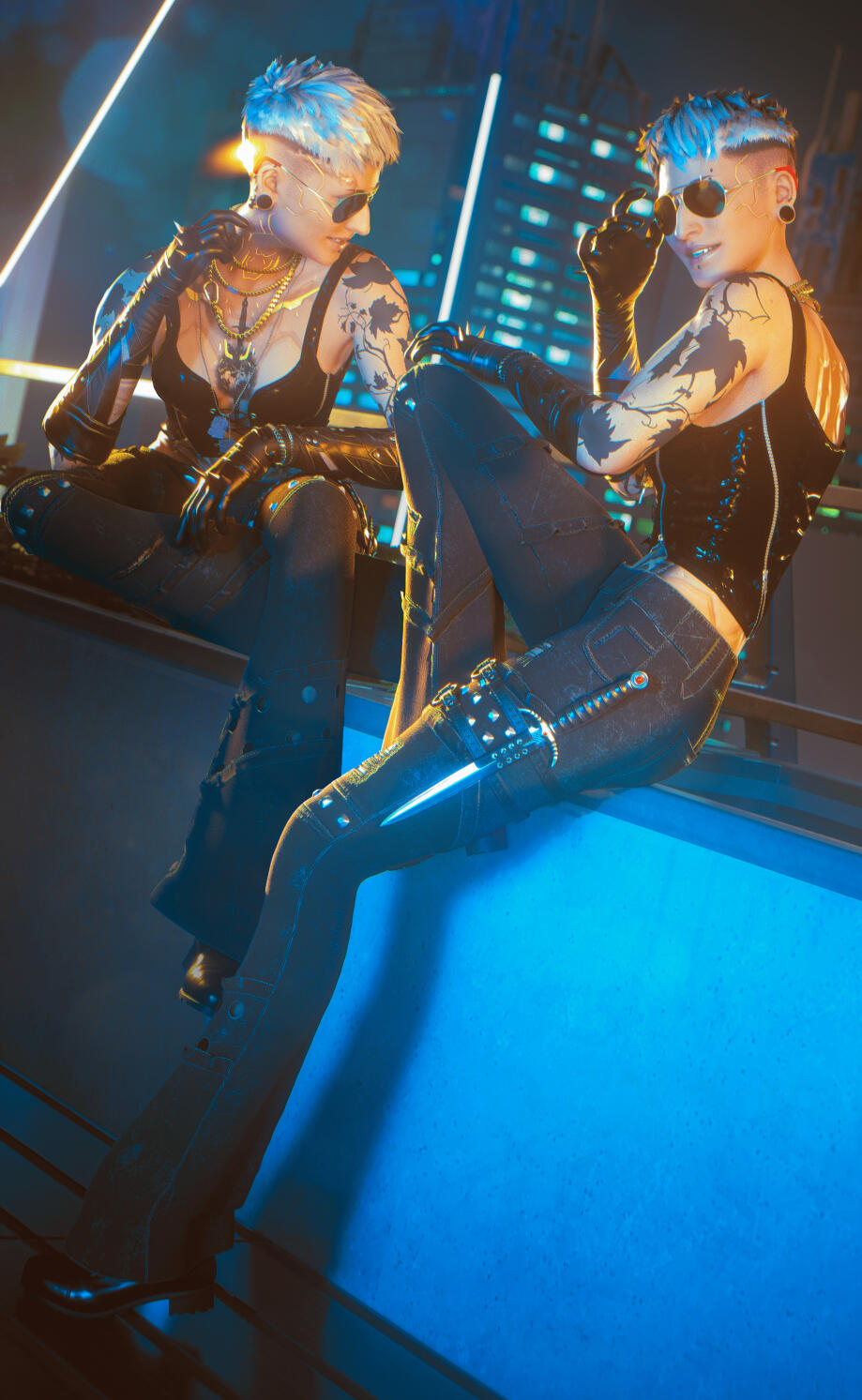 By day I am a VFX artist at a historical and well regarded VFX studio. I use these skills in my VP to reconstruct broken or clipped meshes, awkward posing, or lighting. For every shoot that I do, I take multi-exposures for every picture, and composite them in post so that there are no clipped values or distracting lights. DOF is calculated in 4k using igcs. Each picture takes ~40 min just to render the DOF.Interested in a collaged shoot? Adding 2D + FX design elements in post? Please bring any reference images (of my work, other work, or irl inspo) of what you'd like and we can discuss the price adjustments on a case by case basis.